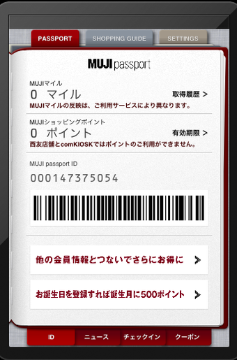 アプリをインストールしたら、生年月日と性別を登録しましょう。誕生月には毎年、500円相当のMUJI ショッピングポイントがつきます。店舗への来店、商品の口コミ投稿、買い物をするとMUJIマイルが加算されます。加算されたマイルは買い物時に使えるMUJIショッピングポイントに好感できます。また、無印良品週間にはクーポンが届くので優待価格で買い物できる点でもお得です。